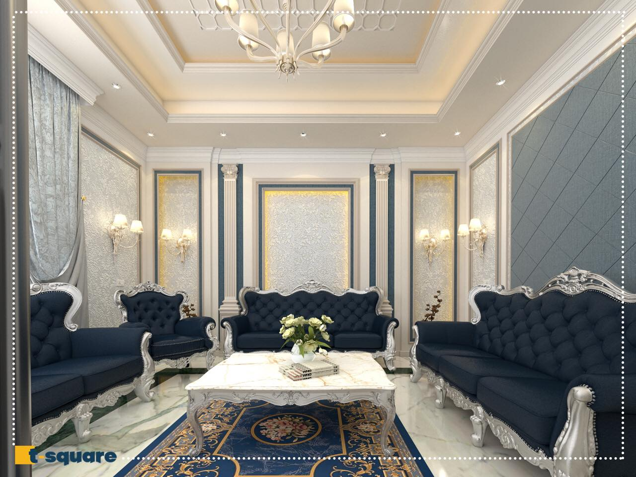 A guest room with a classic design by T-Square, featuring luxury and refined details that reflect the timeless elegance of classical style. Harmonized furniture and elegant lines create a comfortable and warm atmosphere for guests